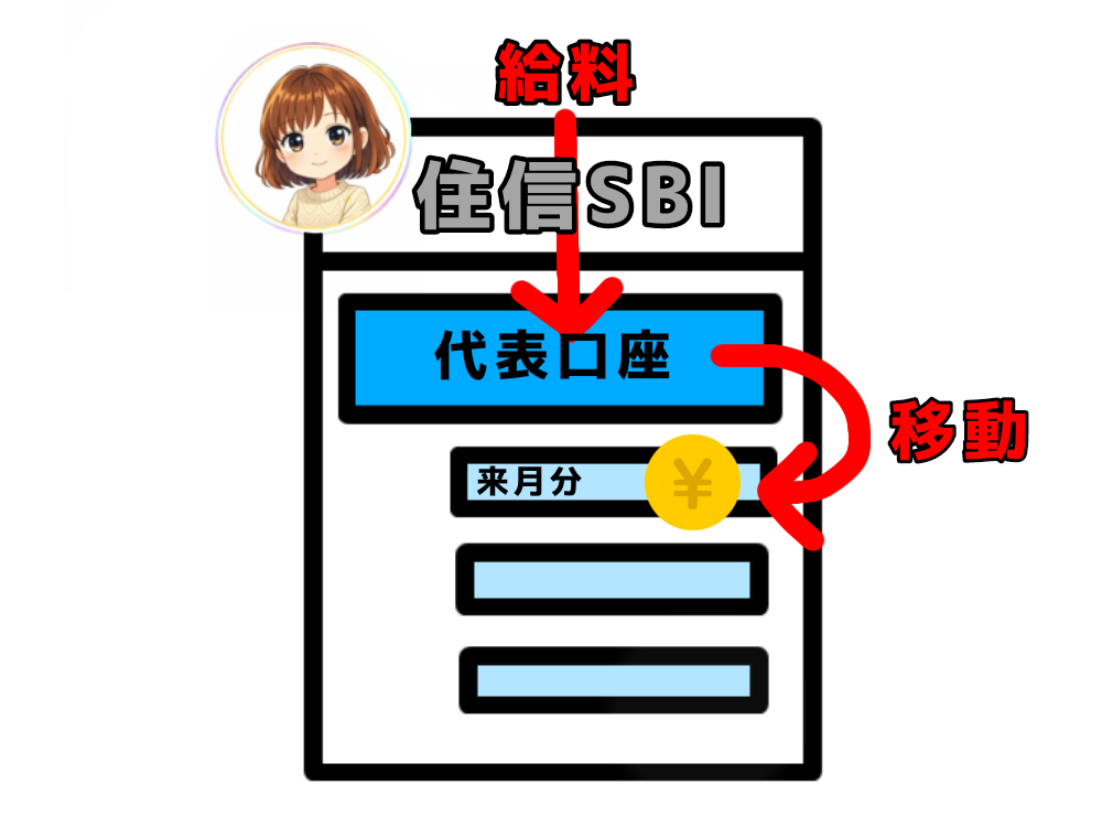 ➤ やること:まぁちゃん口座(代表口座)→(目的別口座「来月分」)へ移動。